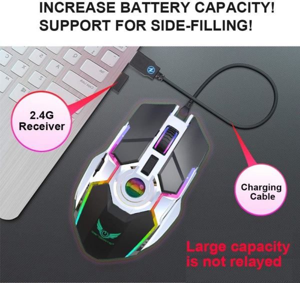 The mouse has 600mAh built-in lithium battery , you can charge it anytime with our charging cable.